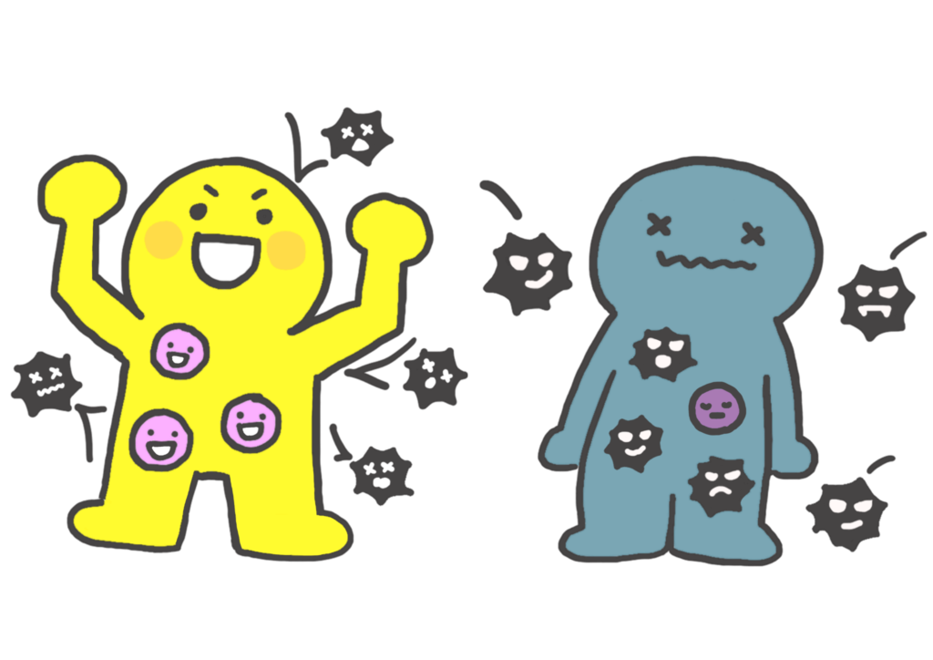 つまり、免疫力が高ければ病気にかかりにくく、免疫力が低下していると病気にかかりやすくなる、といえます。