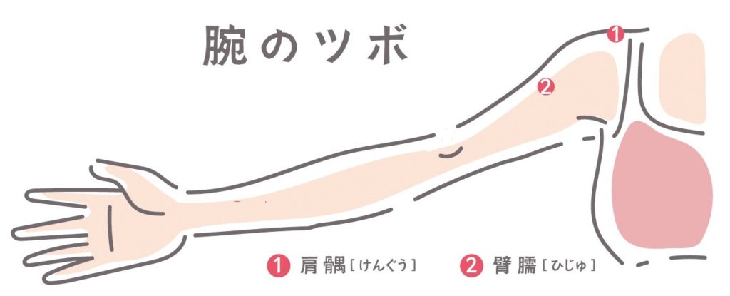 ・「肺」と「腸」にかかわる経絡やツボを刺激する:肩髃(けんぐう)、内関(ないかん)など