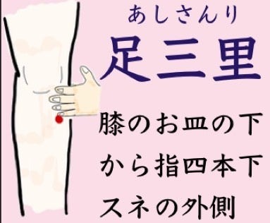例:脛骨の「足三里(あしさんり)」、「三陰交(さんいんこう)」